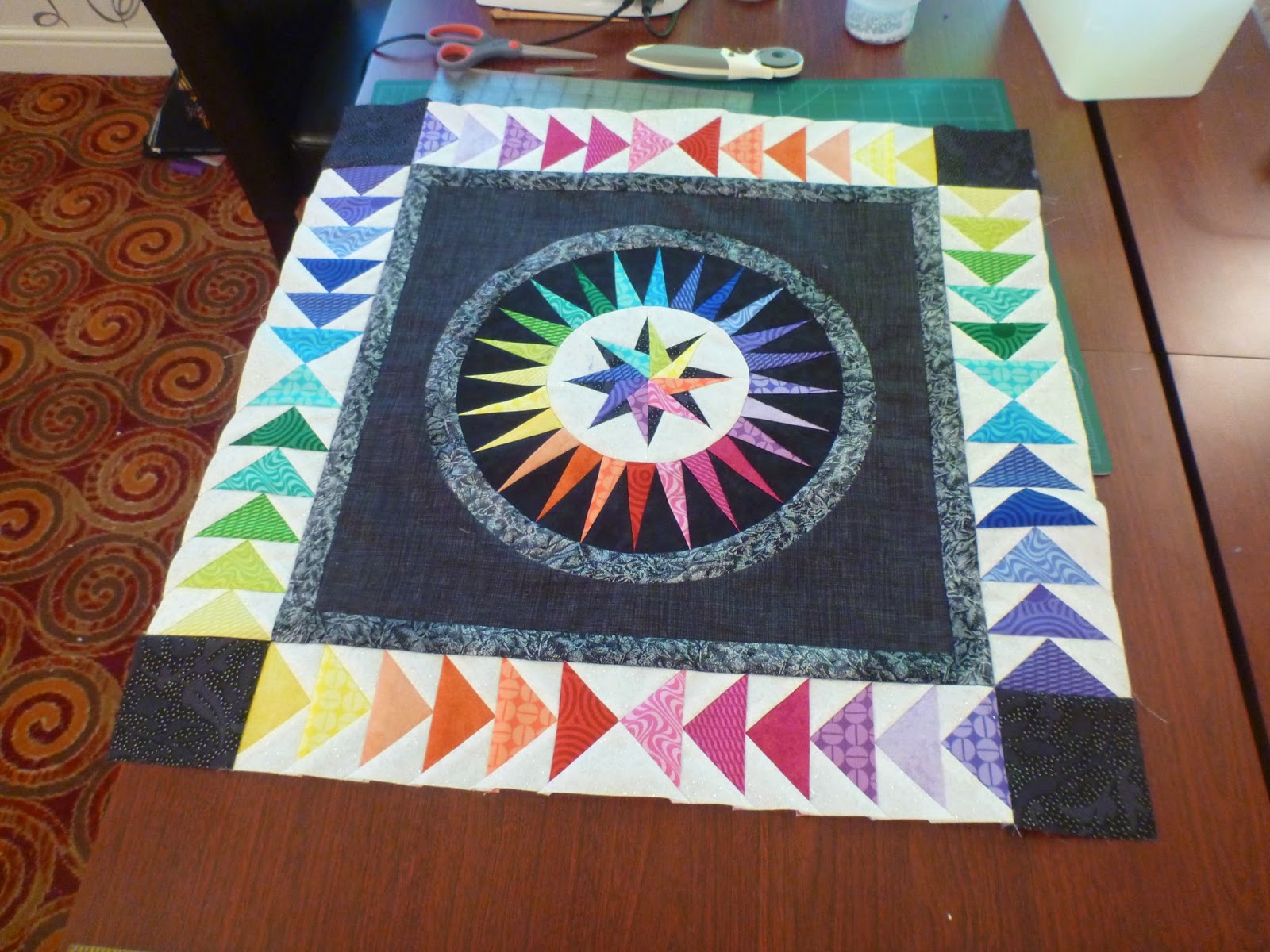 The Students thoroughly enjoyed the first two days working on Happiness and the majority stayed on for another two days to start Enchanting Stars. This quilt is far more complicated than Happiness but does use all the same techniques as Happiness - so the students who had done both felt more confident with the principals than those who arrived for just the last two days.